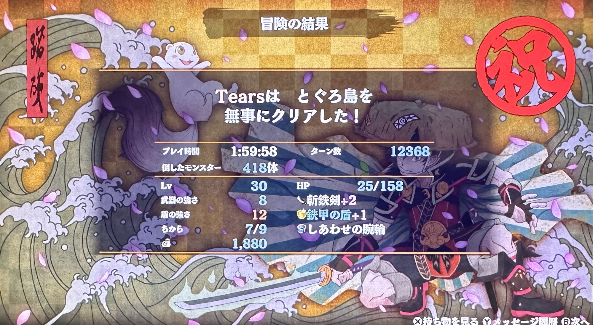 風来のシレンを始めて3日目くらいに漸くクリアしたと思います。 ショボい装備で…よくクリアできたな! ちょっと時間経ってしまったのですが、今更投稿😅 旦那と息子に「これだから脳筋は…」と言われる 風来のシレンは運だと思っているので、途中死んでも、... -